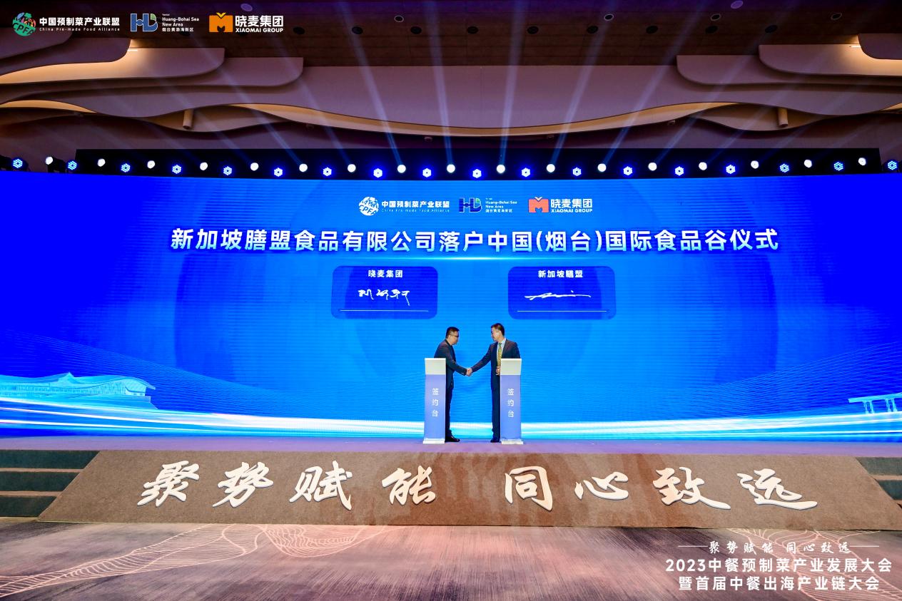 烟台黄渤海新区良好的产业发展环境和得天独厚的自然条件吸引了全球企业的目光,大会现场,新加坡膳盟食品有限公司落户中国(烟台)国际食品谷,未来将在烟台设立业务总部。头部企业的导入将进一步强化新区与国际市场的沟通联络,为中餐预制菜及优质农产品拓展海外市场开辟了新通道,也带动了区域农业、预制菜产业提升高端化、品牌化、规模化、标准化水平。