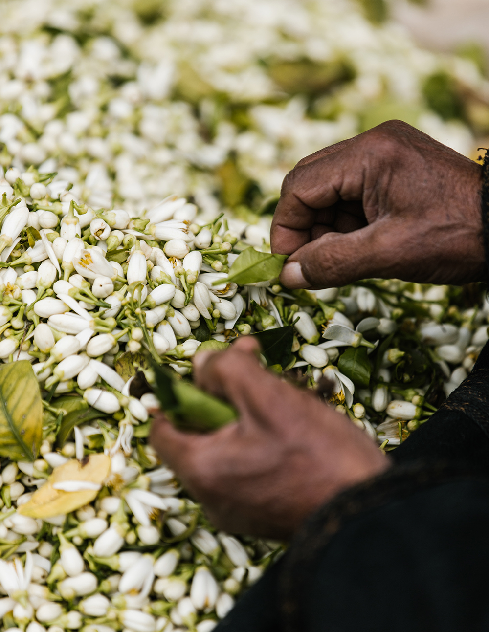 摩洛哥便是他们此行的目的地,更准确地说是Khemisset。在那里,他们发现了一种独特的橙花,生长在明媚的阳光下,沐浴着阿特拉斯山脉的清新山风。制作香水使用的橙花在黎明时以有机方式收割和手工采摘,散发着无与伦比的迷人香气。然后,现场进行蒸馏,只为得到明亮生动的橙花香精:橙花奇航。