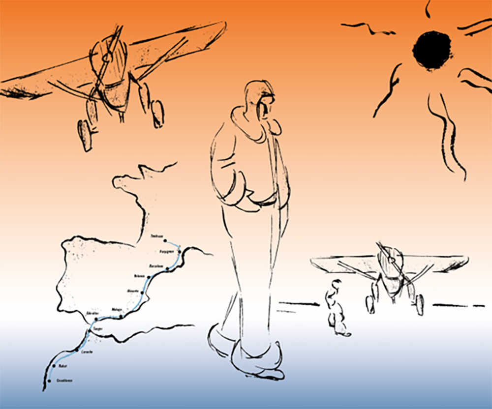 12岁的安托万·德·圣-埃克苏佩里第一次坐上飞机,便爱上了飞行,并在1921年至1923年服役期间,参与了飞行员训练。1926年,安托万·德·圣-埃克苏佩里发布了他的第一部作品《飞行员》。同年,他加入了世界上第一家跨大西洋航空邮件运输公司拉泰科埃航空公司,也就是Aéropostale的前身。彼时,他被派往位于摩洛哥南部沙漠的朱比角机场,担任航站经理一职。他的第一部小说《南方邮航》便诞生自那里,并于1929年出版问世。