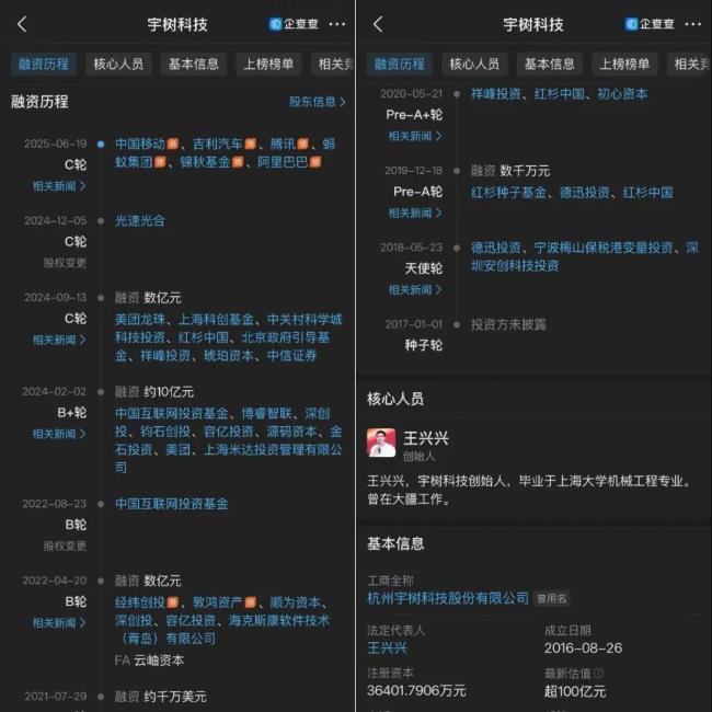 根据宇树科技多轮融资披露的信息来看,其总融资额早已超过10亿元,目前估值约100亿元。除了上述提到的资方,还包括美团龙珠、中关村科学城、红杉资本、中信证券等机构。