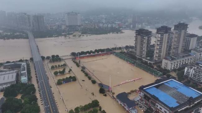 6月24日,贵州省榕江县人民政府防汛抗洪指挥部宣布将第5号防汛Ⅱ级应急响应提升为防汛I级应急响应。当天中午12时起,这一决定正式生效。航拍视频显示,榕江县城区出现大面积被淹情况,“村超”体育场完全被洪水淹没。