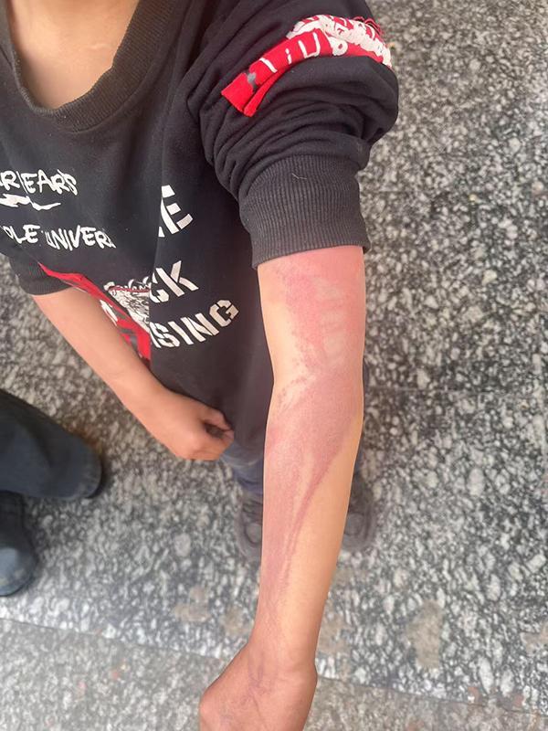 今年4月2日,江林在学校见到了孩子,发现孩子身上、额头上都是伤。当天,她向学校辖区派出所报警,经调解后争取到抚养权。对方提出把房子产权归他们,孩子抚养权则给江林,她同意了,并把彭小小带到身边。江林看到儿子除了脚底板是好的,背部、臀部、下肢等部位都存在不同程度的淤血青紫肿胀。据彭小小说,爸爸会用皮带抽打他,打累了,后妈继续抽打。大腿的伤是用扳手锤的。