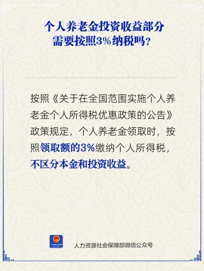 个人养老金投资收益部分需按3%纳税吗?人社部回应 不区分本金和收益