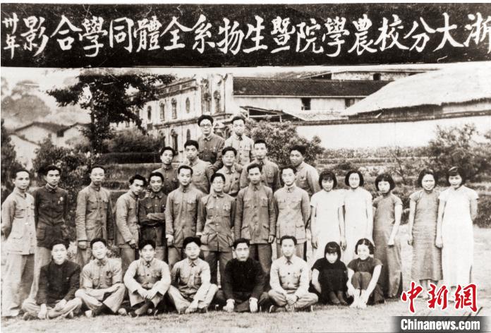 1941年,浙江大学龙泉分校农学院暨生物系全体同学合影。(浙江省档案馆供图)