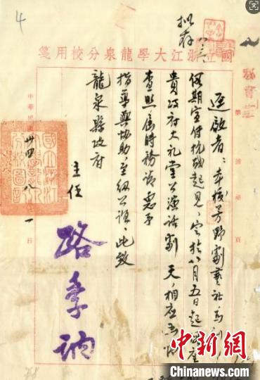 龙泉市档案馆有一份档案,就是1945年龙泉分校向龙泉县政府借用演出场地的函件,“为了抗战起见,于8月5号起上演话剧……”凑巧的是演出时,无线电波中传来了日本宣布无条件投降的消息,整个剧院沸腾了。