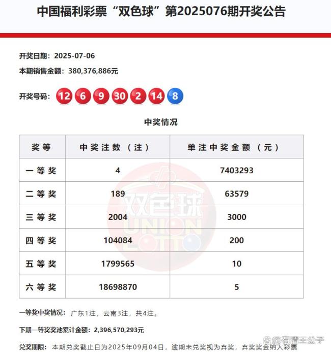 双色球开出4注一等奖 单注740万!广东云南彩民幸运中奖。中国福利彩票双色球第2025076期开奖分析。