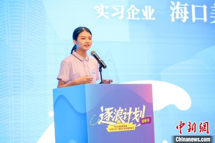 图为港澳大学生代表在2025年海南自贸港“逐浪计划”港澳大学生暑期实习活动迎新会上发言。中新网记者 骆云飞 摄