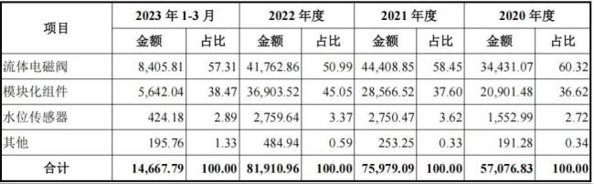 公司主营家电零部件业务,产品包括电磁阀、模块组件、水位传感器、开关门锁等,主要配套洗衣机、智能马桶、洗碗机、净水器等白色家电。