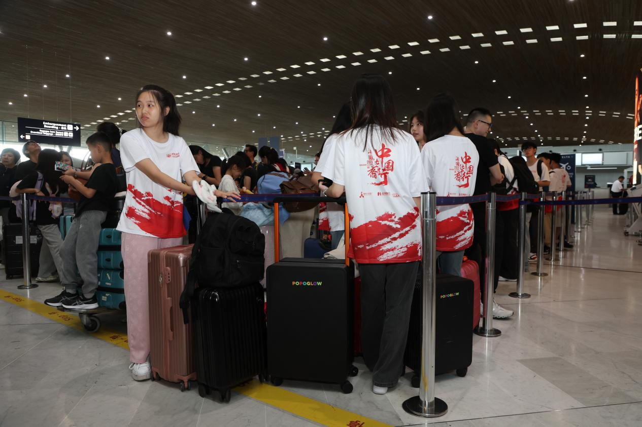 “2025法国百名华裔中国行”首批成员在巴黎戴高乐机场T2E航站楼等待值机。欧洲时报供图