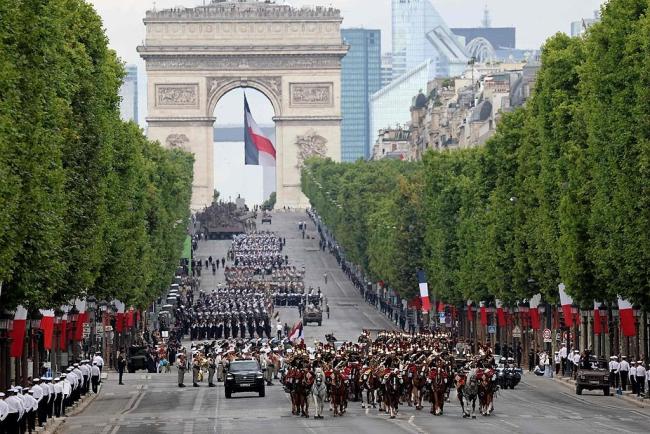 法国巴黎举行国庆阅兵仪式 传统回归香街