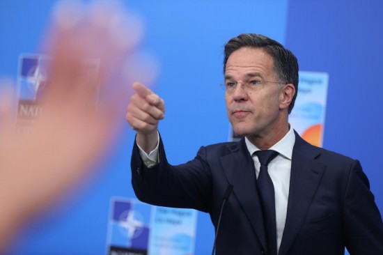 6月25日,在荷兰海牙,北约秘书长吕特在北约峰会期间对媒体记者讲话。新华社记者赵丁喆摄