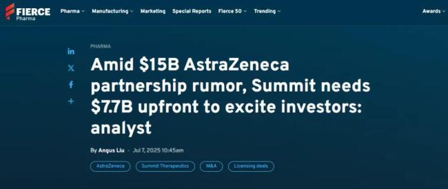 不过,到了7月,依沃西单抗的发展出现转机。据外媒报道,阿斯利康正在和Summit Therapeutics洽谈一笔BD交易,涉及康方生物的依沃西单抗,这笔潜在交易金额可能高达150亿美元。
