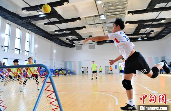图为两岸球队在福州市福外高级中学进行巧固球比赛。中新社记者 张斌 摄