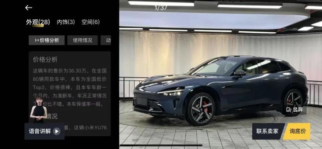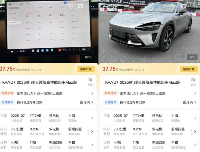 记者了解到,这些准新车的来源主要分为两类,一是部分专业车商在发布会当天就抢订了首批现车,待车辆交付后立即加价转手;另一类是二手车商从首批车主手中溢价收购后再次加价出售,形成“二次加价”现象,这种层层加价的模式直接推高了二手小米YU7的价格。
