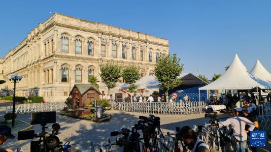 7月23日,在土耳其伊斯坦布尔,记者等候在俄乌第三轮直接谈判会场外(手机照片)。新华社发(萨法尔·拉贾博夫摄)