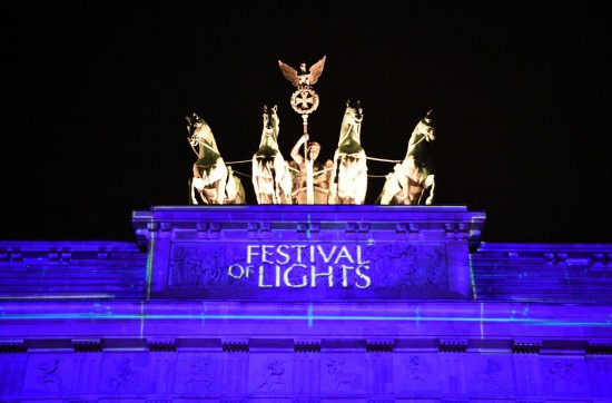 2023年10月6日,德国柏林勃兰登堡门被灯光点亮。新华社记者任鹏飞摄