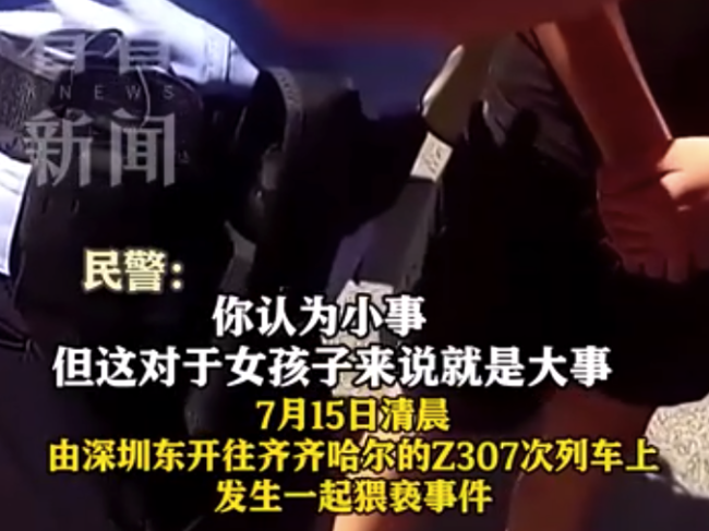 7月15日清晨,由深圳东开往齐齐哈尔的Z307次列车上发生一起猥亵事件。旅客辛某趁两名女乘客熟睡,先后触摸二人腿部,姜女士惊醒察觉后果断报警。最终,齐齐哈尔铁路公安处依据《治安管理处罚法》对辛某依法处以行政拘留10日的处罚。