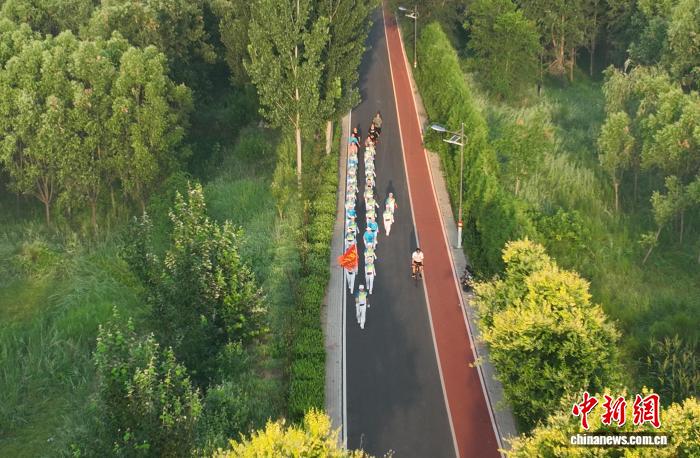 图为7月30日,晨曦下的大运河堤顶路一景。(无人机照片)田博 摄