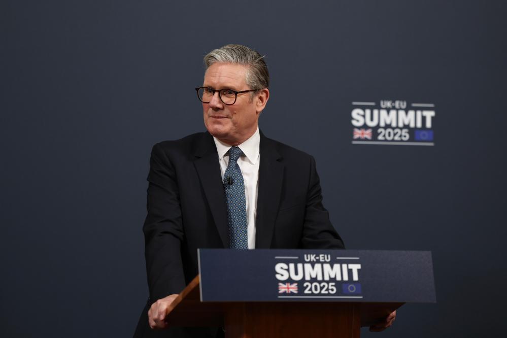 5月19日,英国首相斯塔默在伦敦与欧盟领导人举行会议后参加记者会。新华社发(英国首相府供图)
