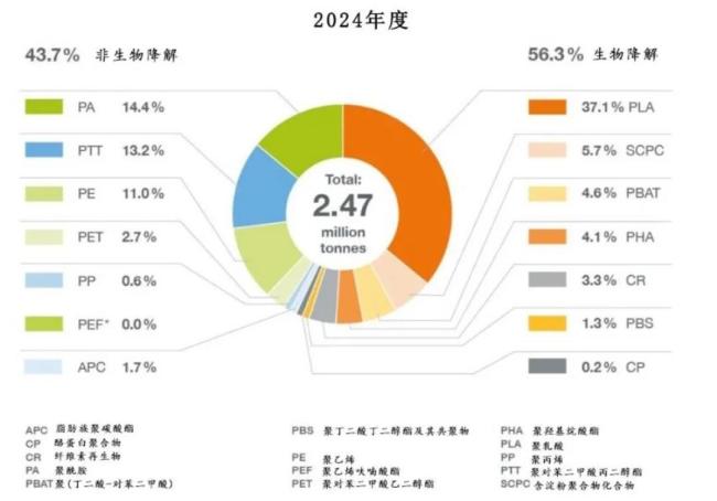 其中聚乳酸作为可完全生物降解材料,是生物基材料中使用量最大的品类,2024年占比37.1%,预计2019年将进一步达到42.3%比例。