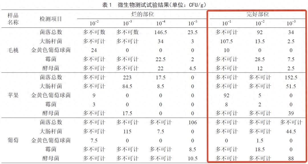 有研究对腐烂了一点的毛桃、苹果、葡萄等几种水果进行微生物检测,发现在完好部位中也能检出大肠杆菌、霉菌、酵母菌等微生物。