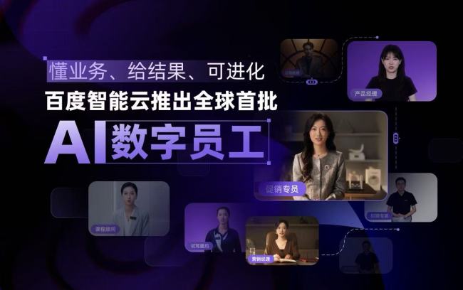 8月5日,百度AI Day开放日现场,百度智能云宣布推出全球首批AI数字员工,涵盖营销经理、还款助理、汽车销售、促销专员、产品经理、课程顾问、招聘专员核心业务职能。依托百度智能云的AI全栈能力,数字员工深度融合了大模型、数字人技术及行业Know-How三大业务优势,能够实现开箱即用,上岗即胜任,精准赋能垂直业务场景的同时持续沉淀岗位能力,以“懂业务、给结果、可进化”三大特性重新定义企业级智能服务能力。