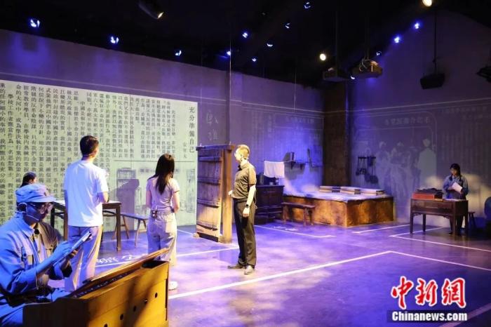 穿过青砖铺就的廊道,走进四周堆满书籍的房间,灯光渐暗,游客三三两两盘坐在地,随着三位演员的入场,沉浸式剧目《东高庄——一个山村的中国叙事》在抗大一分校沂蒙文献体验馆正式开演,东高庄的故事也徐徐展开。