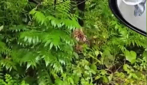 8月7日(报道),村民开车下山路边偶遇东北虎,目击者:有三四百斤,脑袋和脸盆那么大,当地林业局:野生保护动物无法驱赶,已通知村民和进山人员。