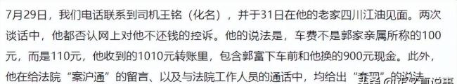 郭富的哥哥郭伟找到弟弟时已经太晚,愤怒之下将怒气发泄在司机王铭身上,要求退还多付的车款并当面道歉。经过四个月的努力,终于联系上王铭,但他否认多收车费,声称郭富是在进行现金套现。