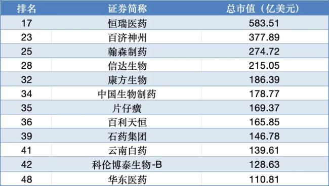全球市值TOP50剧变!12家中国药企上榜,恒瑞冲高、科伦博泰杀入、百利天恒狂飙