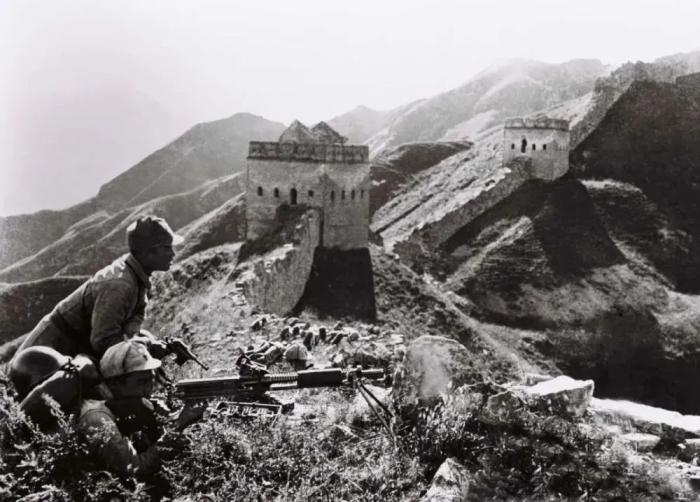 战斗在长城上的八路军。