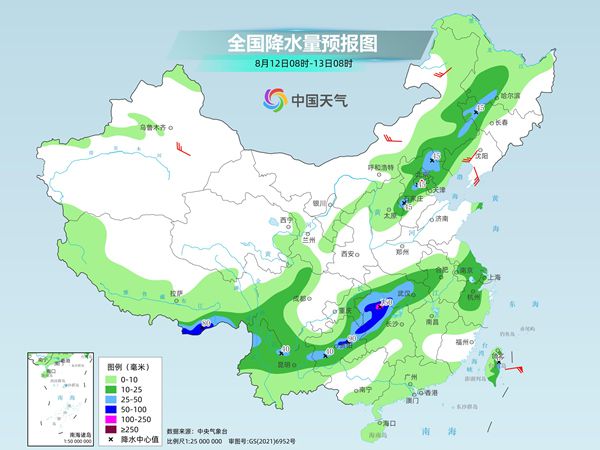 今天,主雨带仍将维持在四川盆地至江汉、江淮一带,部分地区雨势猛烈,明天上述地区强降雨区域会有所南压,范围也会减小。随着高空槽东移,今明两天华北北部、东北地区也将出现降雨,且伴有雷暴大风等强对流天气。