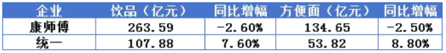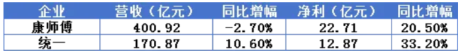 比业绩:康师傅400亿下滑2.7%,统一营利双增