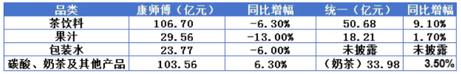 看品类:康师傅双线受挫,统一茶饮料表现抢眼