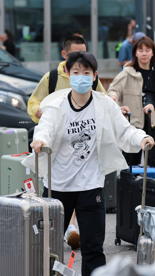 孙颖莎的刘海飞起来了!孙颖莎身穿白色外套抵达瑞典开启备战