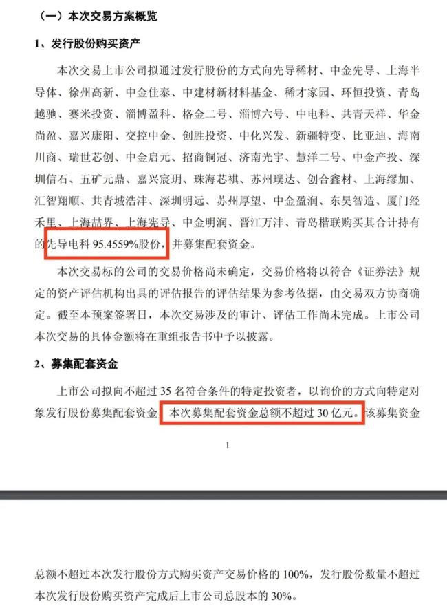 公告显示,衢州发展将通过股权支付方式收购先导电科95.4559%的股权,并以此为前提募集配套资金30亿元,用于上市公司或标的补充流动资金、标的投资项目等事项。