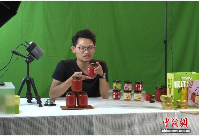 在山西省晋中市祁县古县镇东城村腾达农耕文化园,工作人员正通过直播间,向网友讲解产品的优势。庞亚鑫 摄
