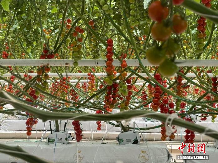 图为智能玻璃温室里培育的串番茄茁壮成长。戴文昌 摄