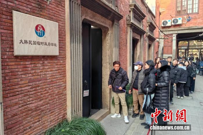 2025年1月12日,韩国游客在上海市马当路上的大韩民国临时政府旧址排队等候参观。 中新社记者 汤彦俊 摄