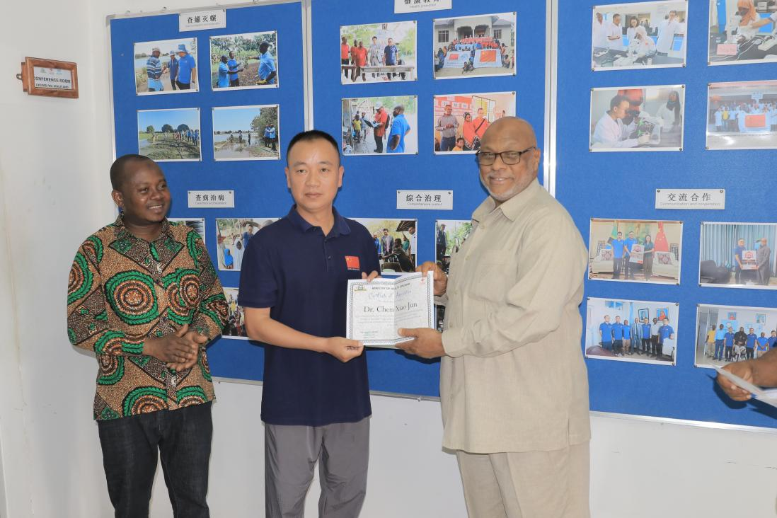 坦桑尼亚桑给巴尔卫生部部长马兹伊拉向专家组成员颁发感谢证书。施亮摄