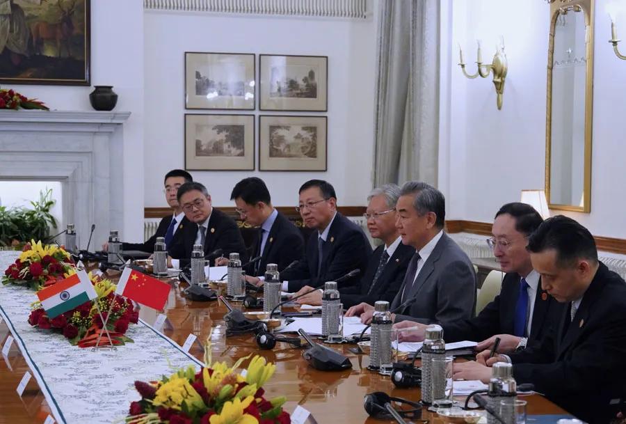 双方认真落实两国领导人达成的共识,各层级交往对话逐步恢复,边境地区维护和平安宁,印度香客重启中国西藏神山圣湖朝圣,中印关系呈现向合作主航道回归的积极态势。今年是中印建交75周年。双方要认真汲取75年来的经验教训,树立正确战略认知,视对方为伙伴和机遇,而不是对手或威胁,将各自宝贵资源投入到发展振兴上去,探索相邻大国互尊互信、和平共处、共谋发展、合作共赢的正确相处之道。