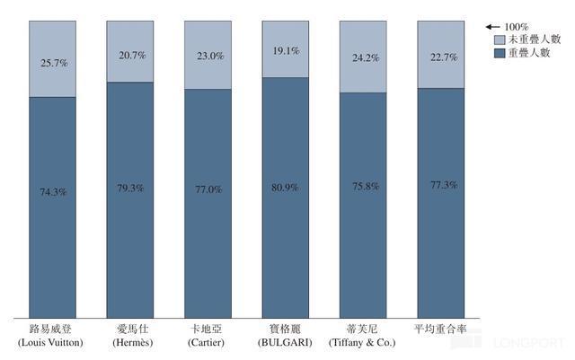 虽然公司没有给出具体的拆分,但结合调研信息,由于老铺老会员的复购率其实并不高,当年下单的存量客户占上一年会员总数的比例不到15%(爱马仕的复购率在50%以上),因此,海豚君推测老铺店效的提升主要依赖的是新增用户,而这些新增用户又有很大一部分来在国际奢侈品品牌的受众群体。