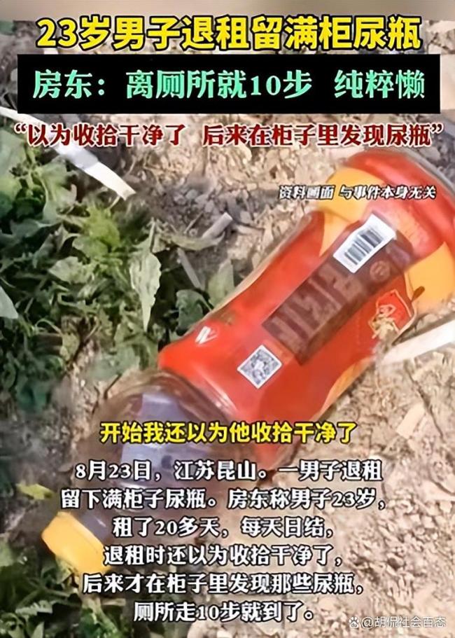 23岁男子租住20多天,退租留满柜尿瓶 租住文明引热议