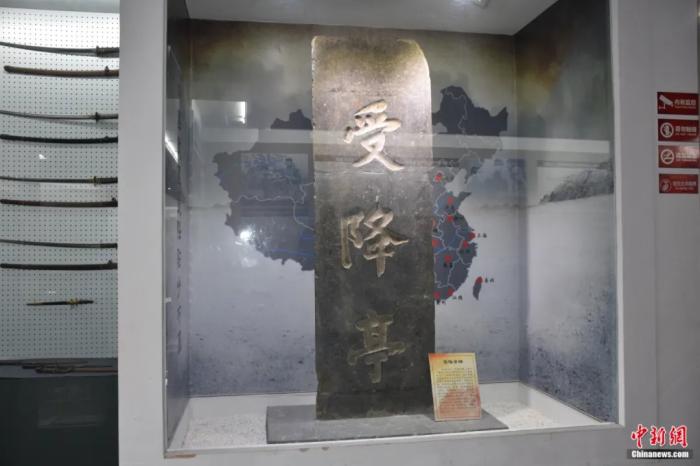 漯河中州抗战纪念馆内馆藏的“受降亭”碑。程耀旗 摄