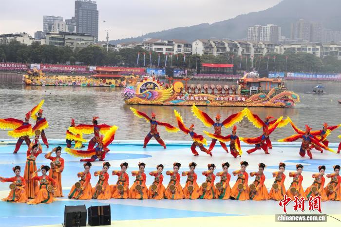 中新网广元9月1日电 (苗志勇)9月1日上午,2025年广元女儿节开幕式举行。在嘉陵江巡游的彩船上,情景模拟再现了中国古代女皇武则天游河湾。站在船头的“女皇”霸气十足,将武则天神态演绎得活灵活现,数以万计的市民和海内外游客纷纷用手机拍摄或直播节日盛况,沉浸于欢乐的海洋中。