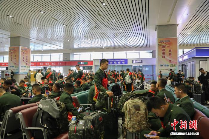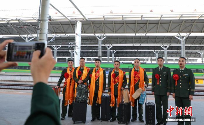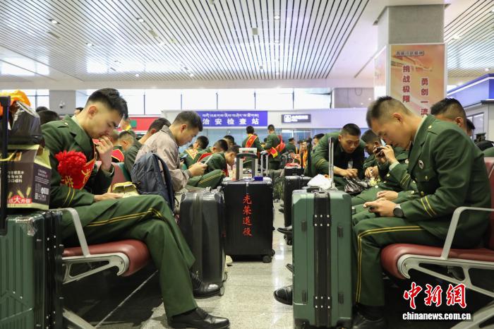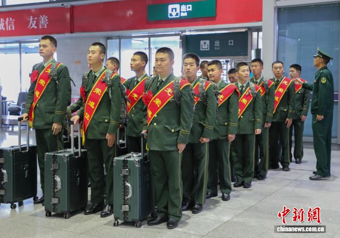 9月1日,青海西宁,武警青海总队部分退伍老兵在西宁火车站候车。中新社记者 马铭言 摄
