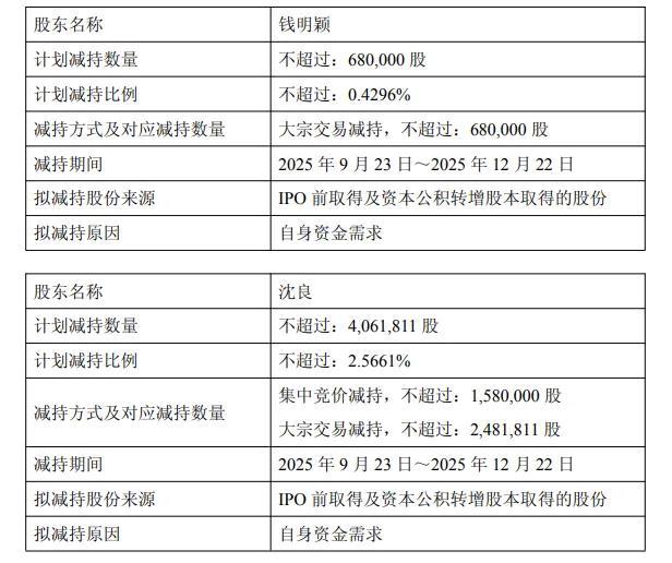 截至本公告披露日,钱明颖女士及其一致行动人沈良先生合计持有公司13.28%股份,股份来源于公司首次公开发行前取得的股份以及公司实施资本公积转增股本取得的股份,且已于2025年8月11日上市流通。