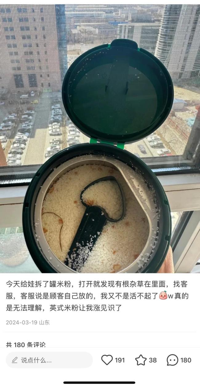 据新京报8月16日报道,英氏客服于8月15日回复称,公司也注意到相关情况,但公司米粉在生产过程中会有相应检测、异物拦截和筛网过滤,还有一些产品会进行人工挑拣,不可能出现这么多异物。网传信息中出现的异物,客服不确定具体为何物,目前接到最多的信息反馈是产品中出现虫子。