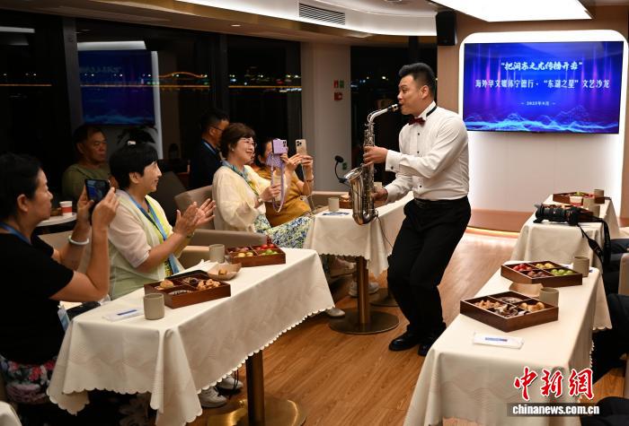 9月13日晚,“把闽东之光传播开去”——海外华文媒体宁德行活动在福建省宁德市启动,此次活动共有12国16家海外华文媒体代表前来参访。图为“东湖之星”文艺沙龙现场,海外华文媒体代表体验“零碳文旅”、共赏文艺沙龙。中新社记者 吕明 摄