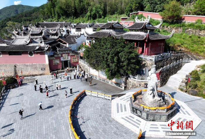 9月14日,“把闽东之光传播开去”——海外华文媒体宁德行活动走进福建宁德,领略闽东的锦绣河山,感知闽东的灿烂文化,此次活动共有12国16家海外华文媒体代表前来参访。图为海外华文媒体代表参观古田县临水宫祖庙,了解陈靖姑信俗文化。中新社记者 吕明 摄
